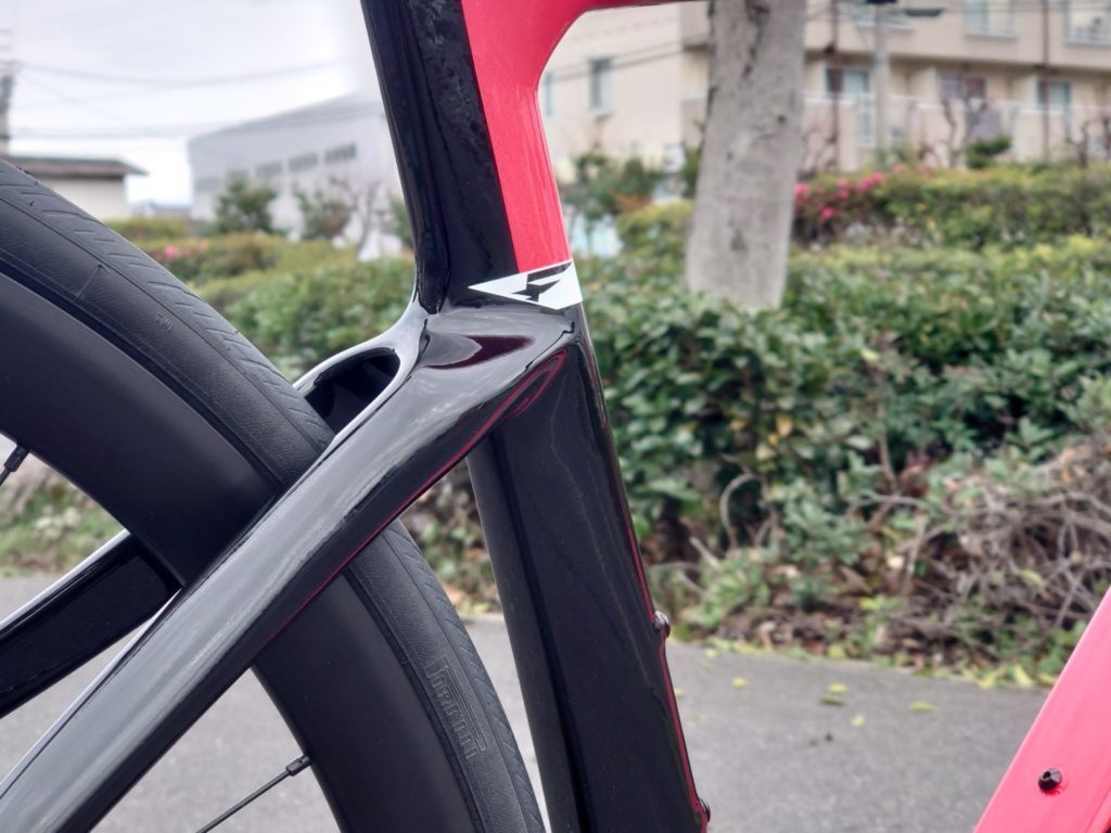 DOGMA Fと異なる点として挙げられるのは、ダウンチューブのジャンクションBOXでしょう。電動コンポーネント専用のDOGMA Fに対して、機械式や旧型電動コンポーネントに対応する汎用性があるので、お好みのパーツアッセンブルが可能です。